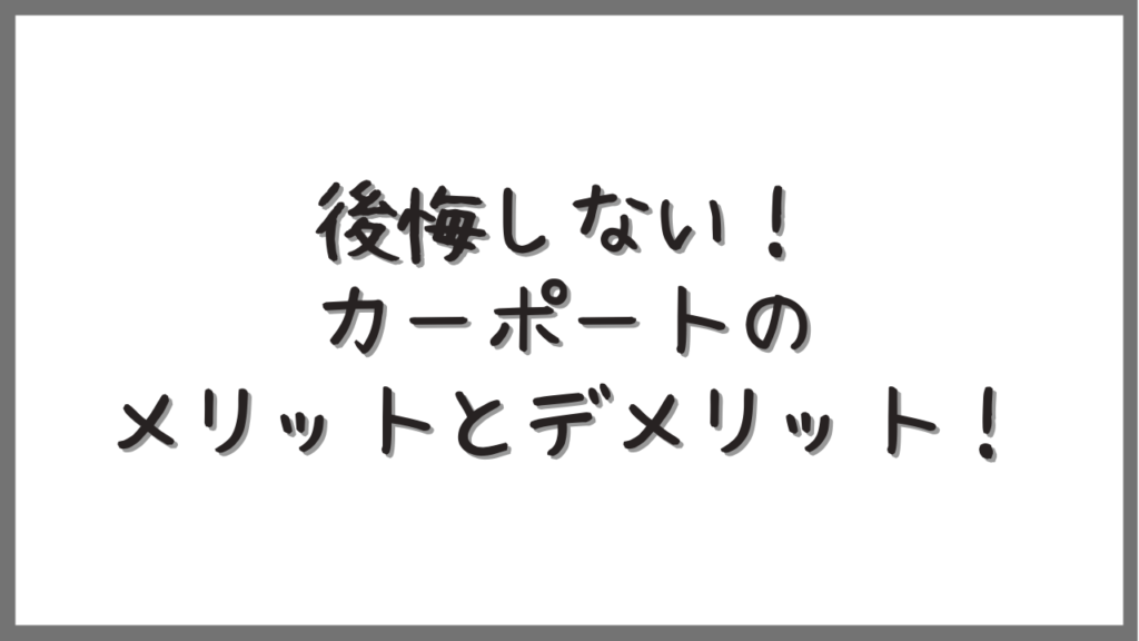 戸建てのマイホームを新築したら、カーポートは必需品だと思っているけど、後悔したくないですよね。